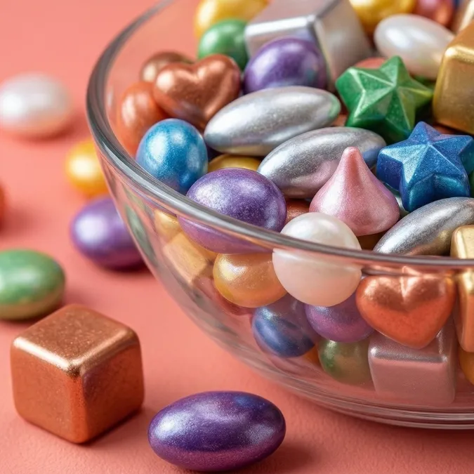Decoración de chocolates y confitería con efectos perlados, metálicos o brillantes